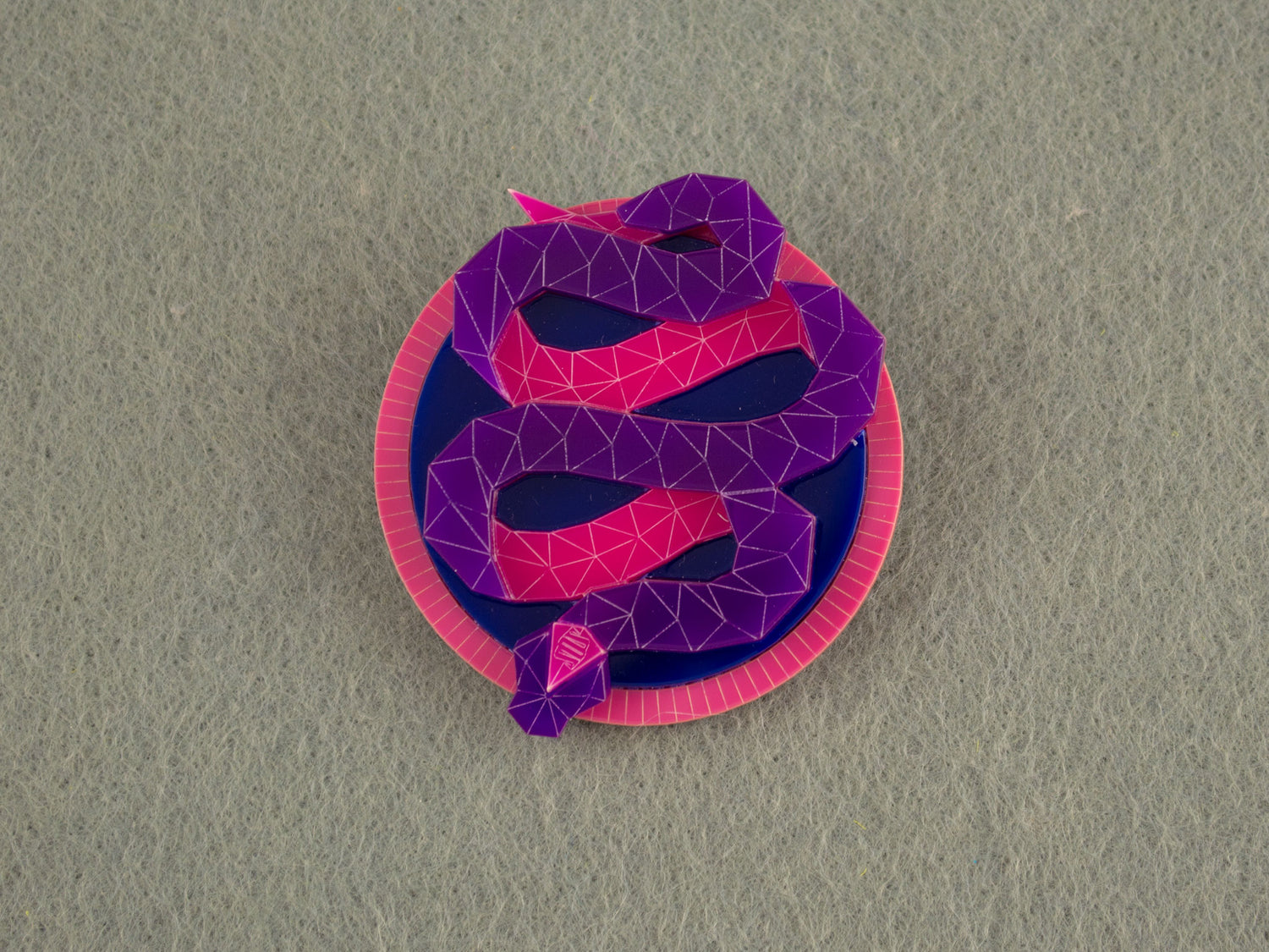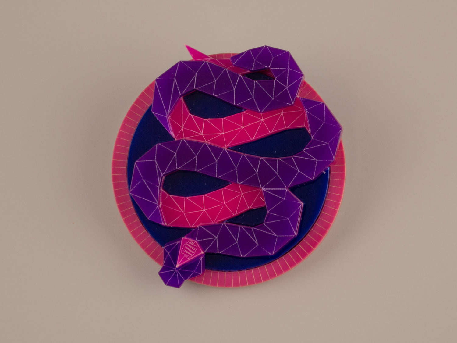 Handmade from laser-cut acrylic, this sleek, contemporary design captures the snake in a vibrant, sculptural form. The Snake stays true to my signature geometric style, while intricately etched details add depth and tension. Resting within its circular frame, the coiled shape enhances the illusion of motion - ready to strike!