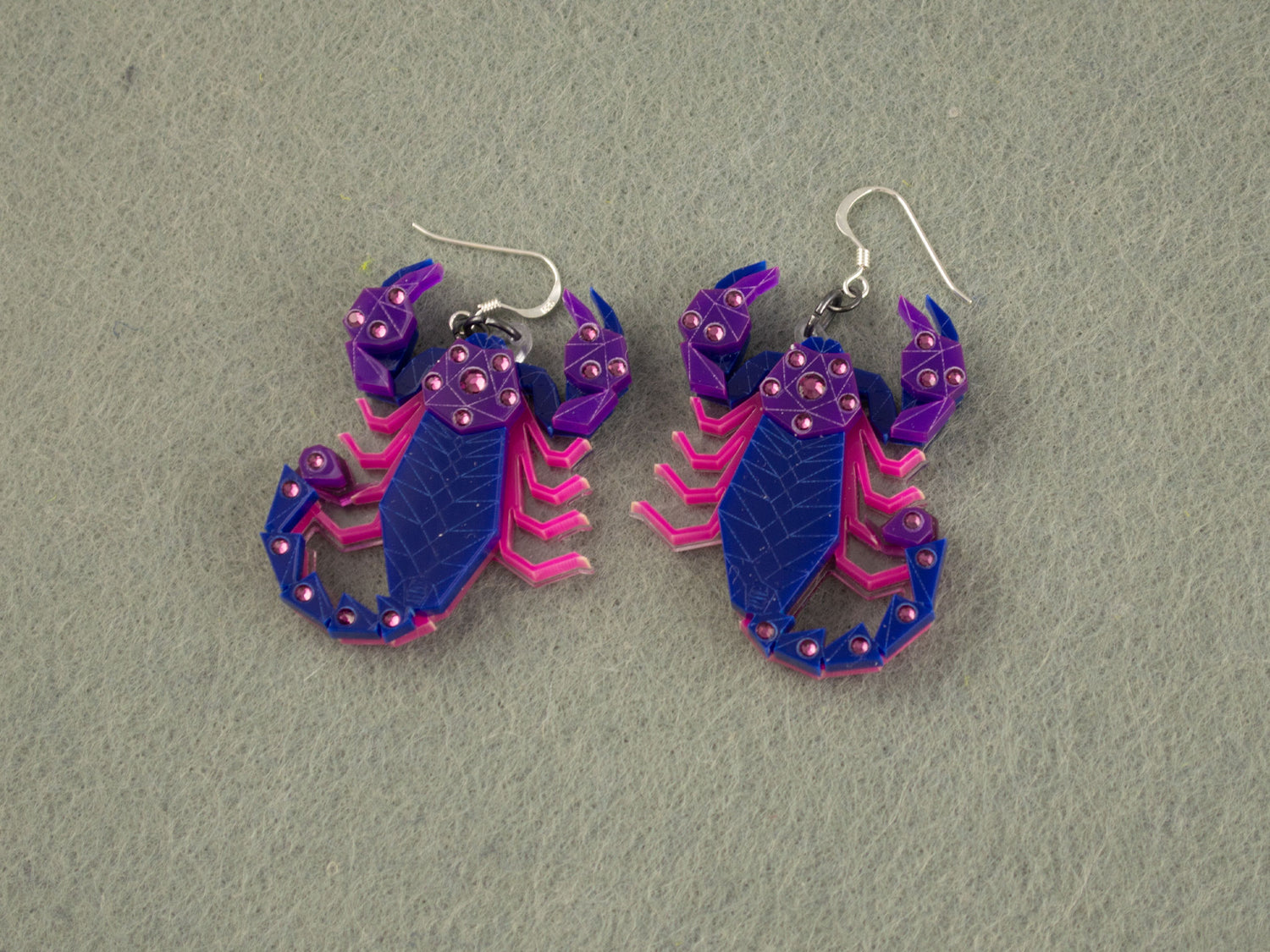 The Scorpion Earrings capture the venomous allure of this nocturnal predator in an understated, wearable form. Handcrafted from laser-cut acrylic, these earrings feature the same geometric details & finely scored craftsmanship as the larger pieces, with Preciosa crystals adding a touch of brilliance. Their miniature design is perfect for adding a subtle yet powerful accent to any look, embodying the scorpion’s mystique & finesse with every movement.